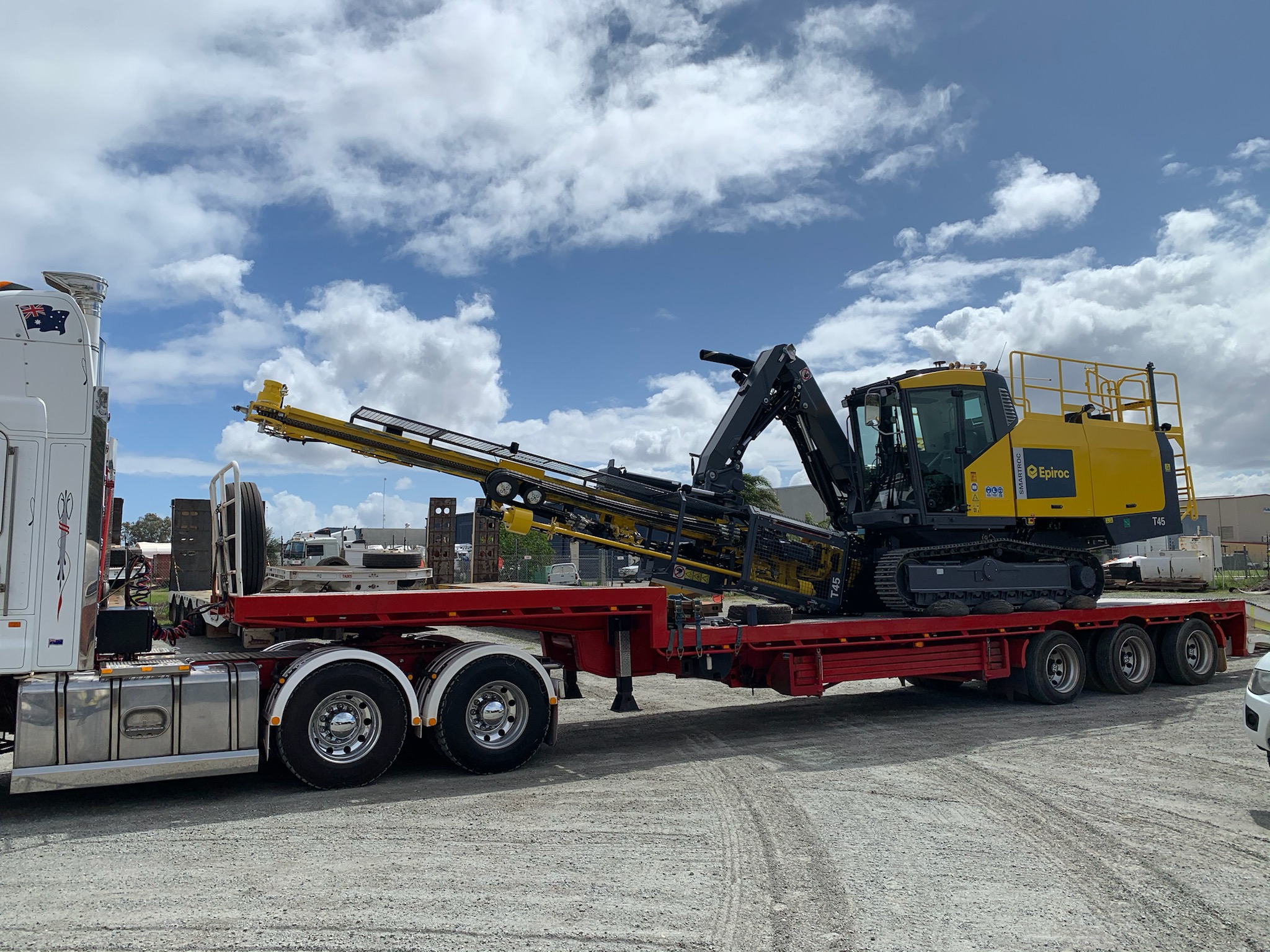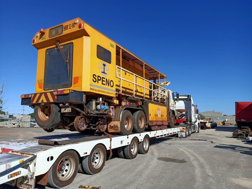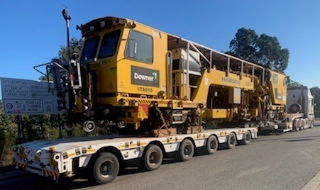 The 6 axle low loader is one of our specialised trailers with a lower deck that extends to 22.5 long & 2.9 wide, using the outriggers. These dimensions make it ideal for plant and machinery movements such as a 51t Rail Tamper. Escorted by pilots and completing Bridge Video Supervision requirements as instructed by the MRWA.